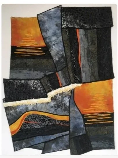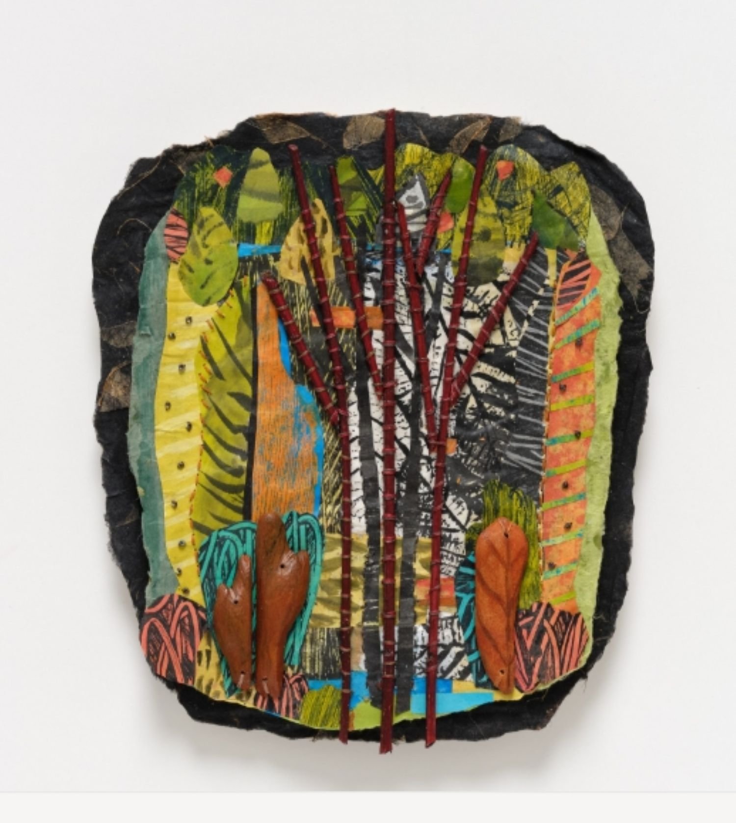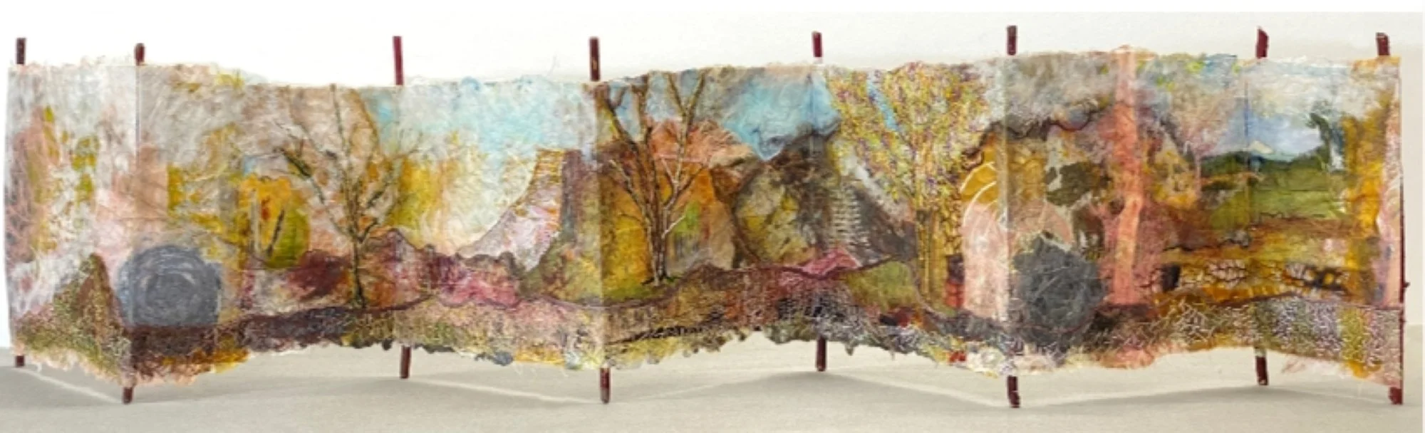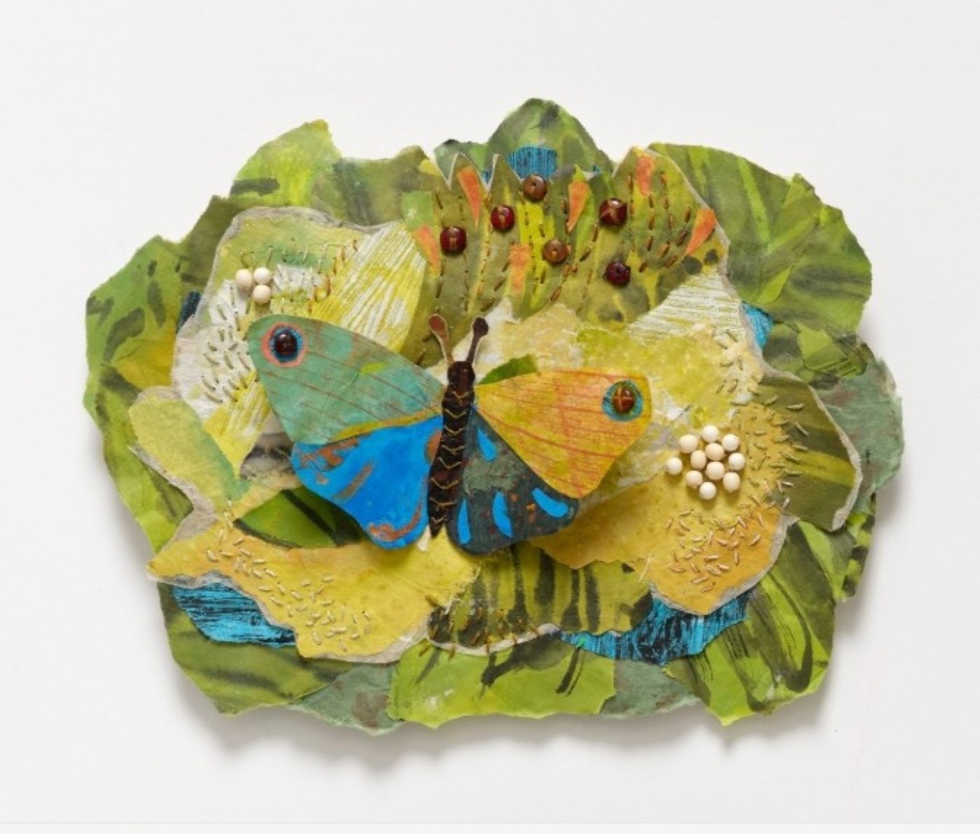 Medium: Collage with hand and machine stitching on handmade paper & fabric