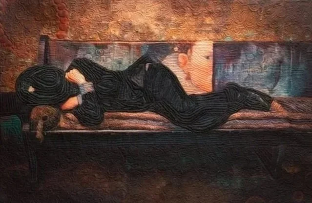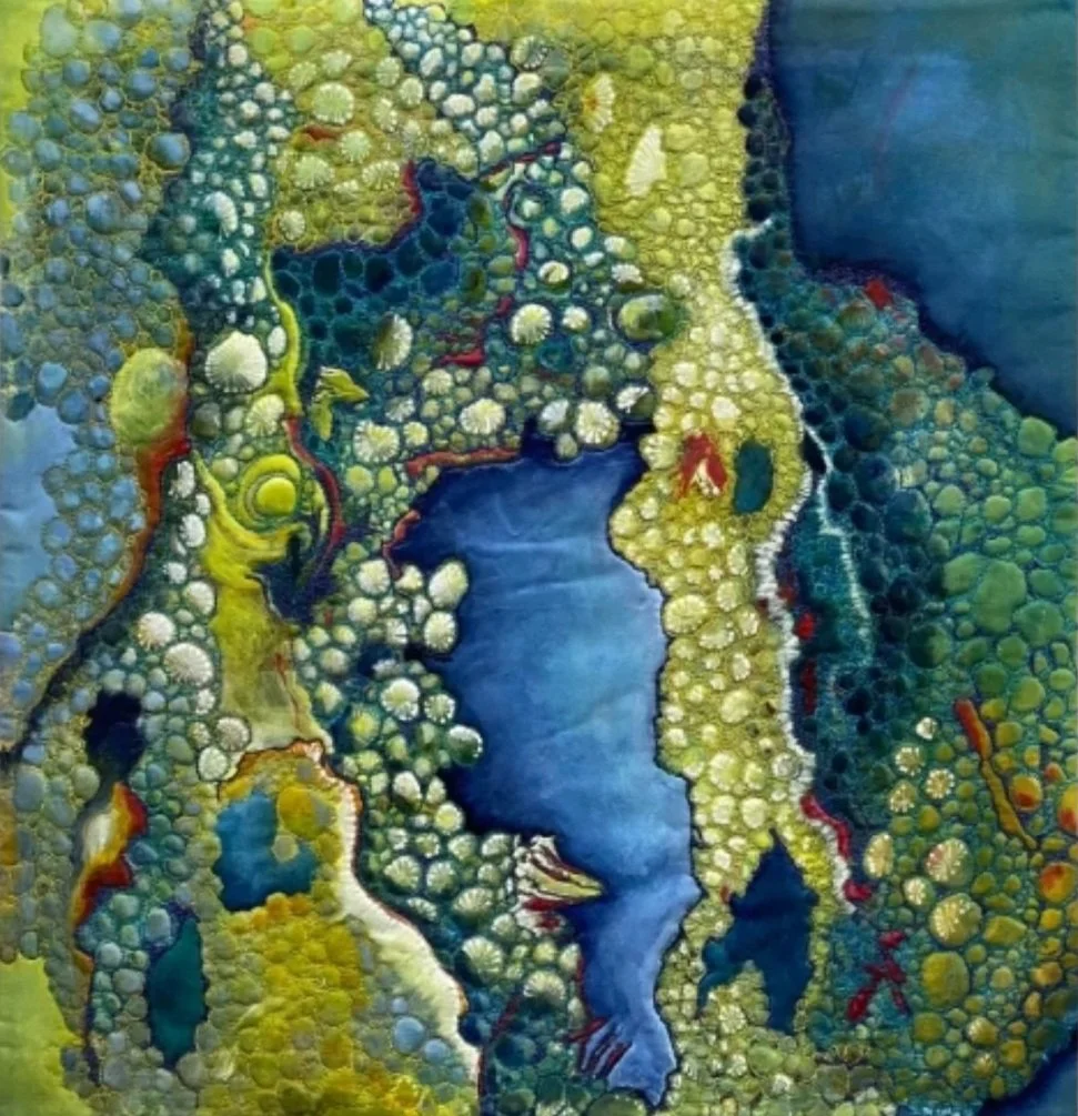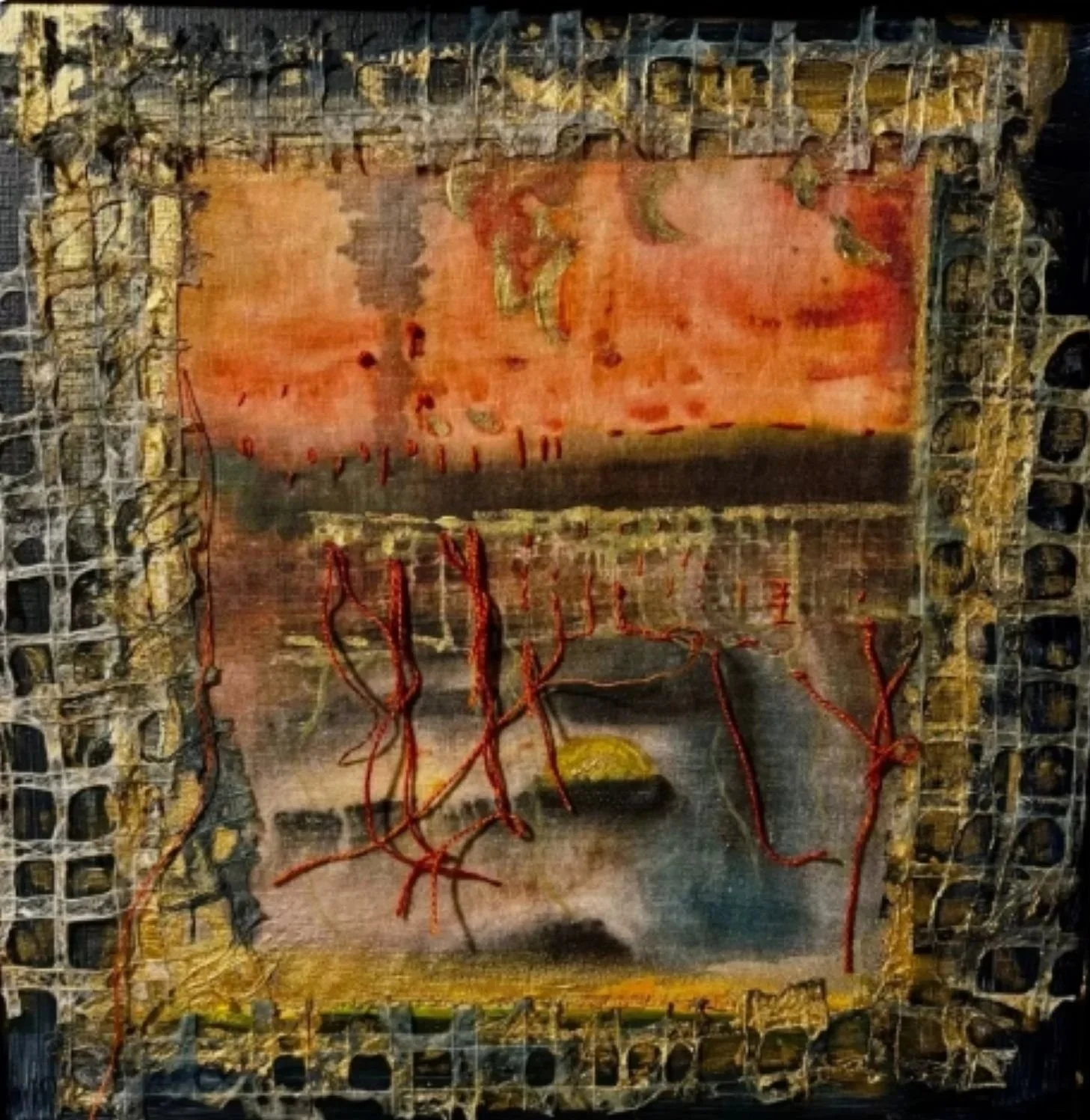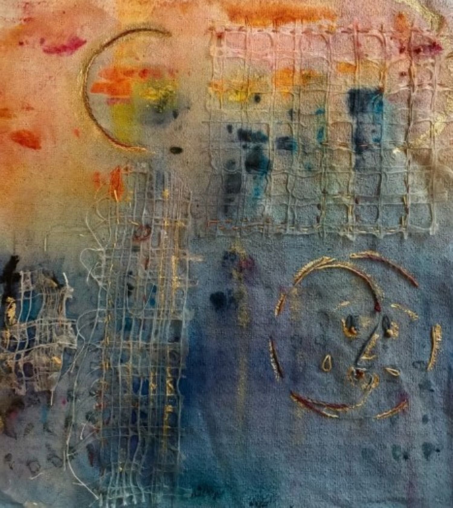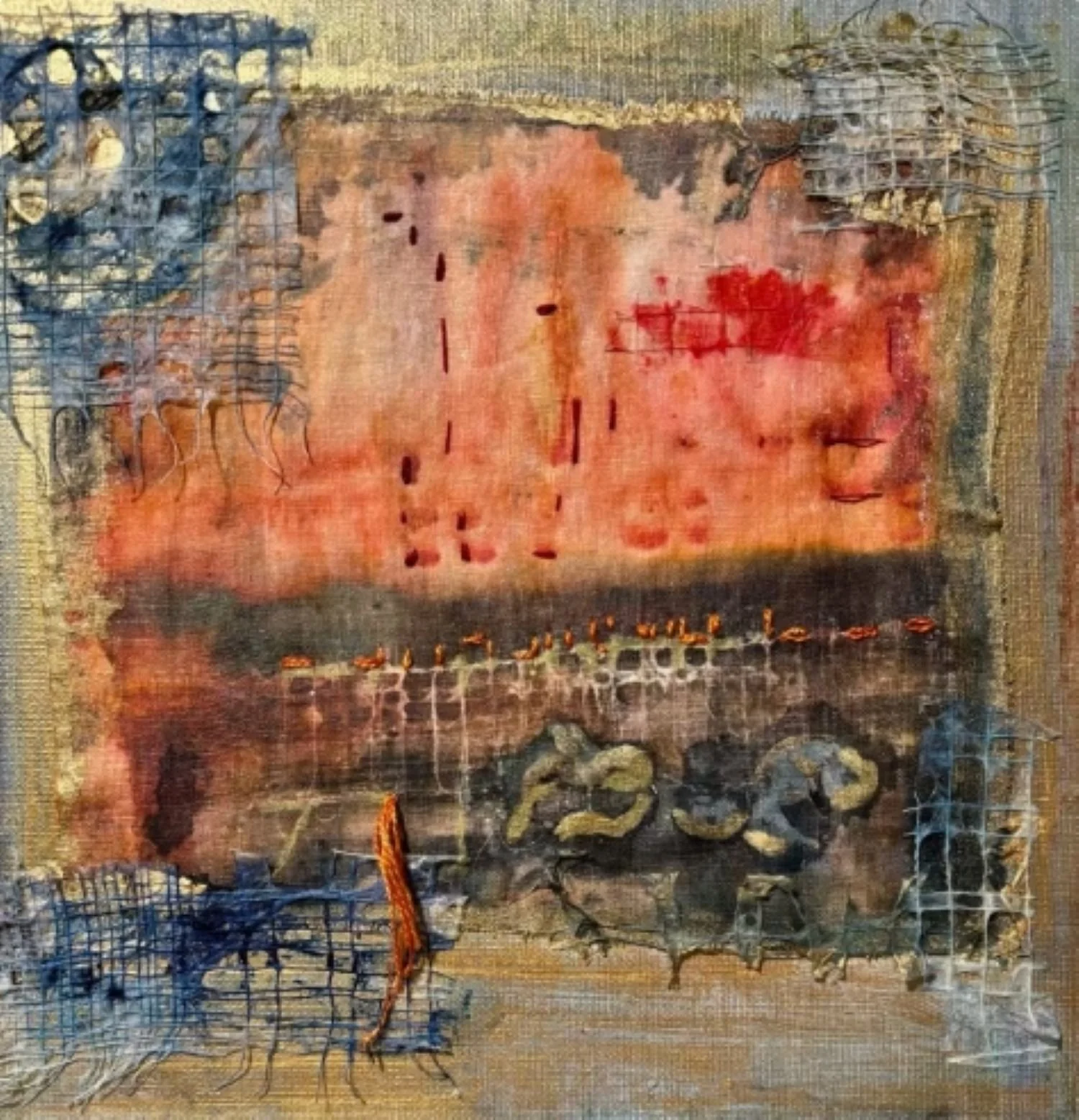 Medium: Mixed Media, acrylic paint hand stitched on canvas