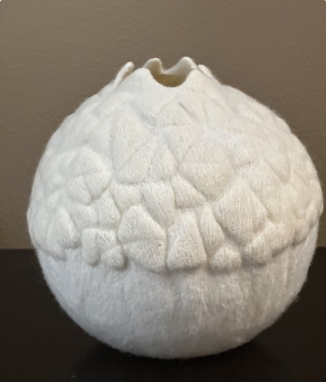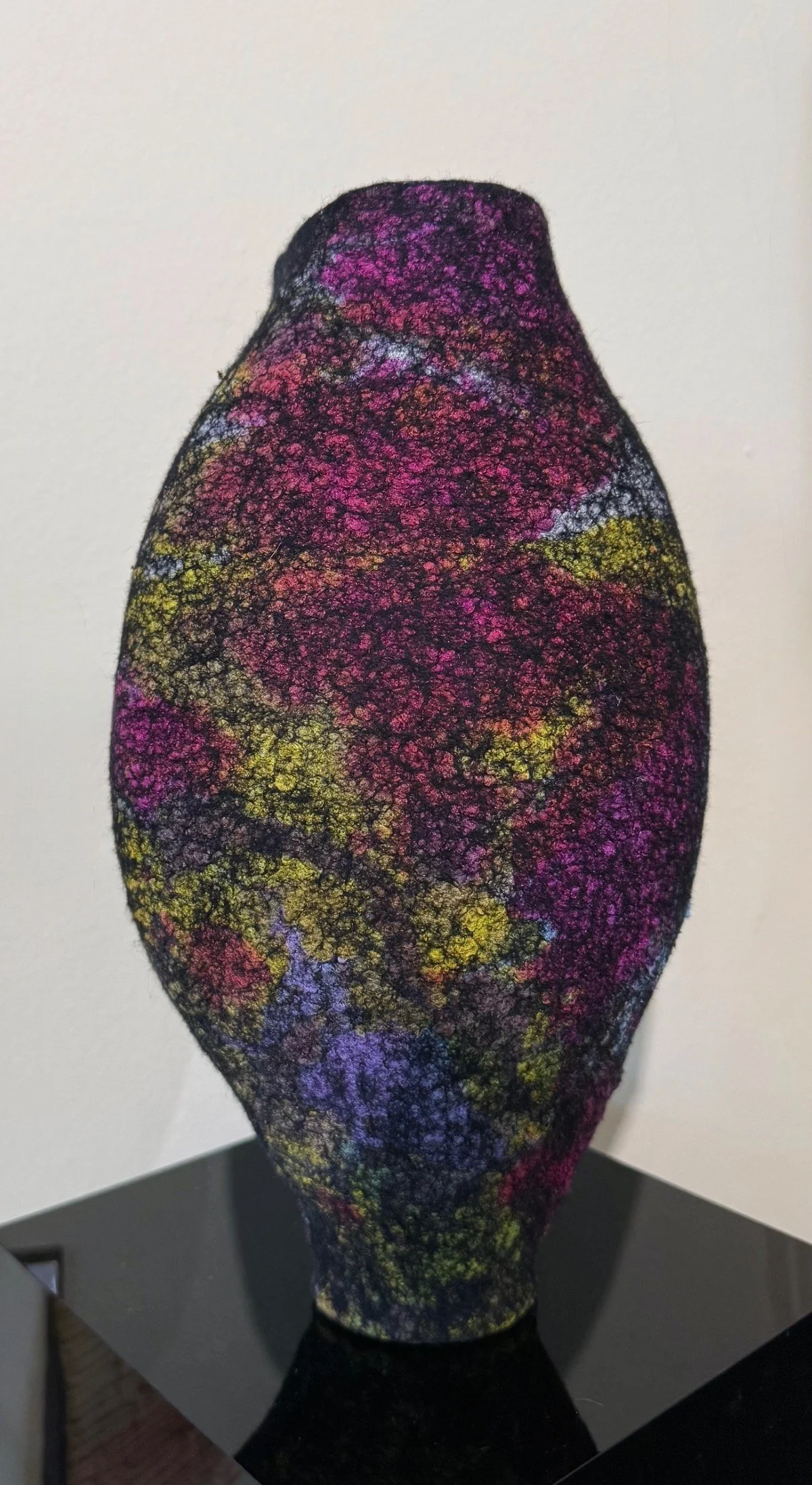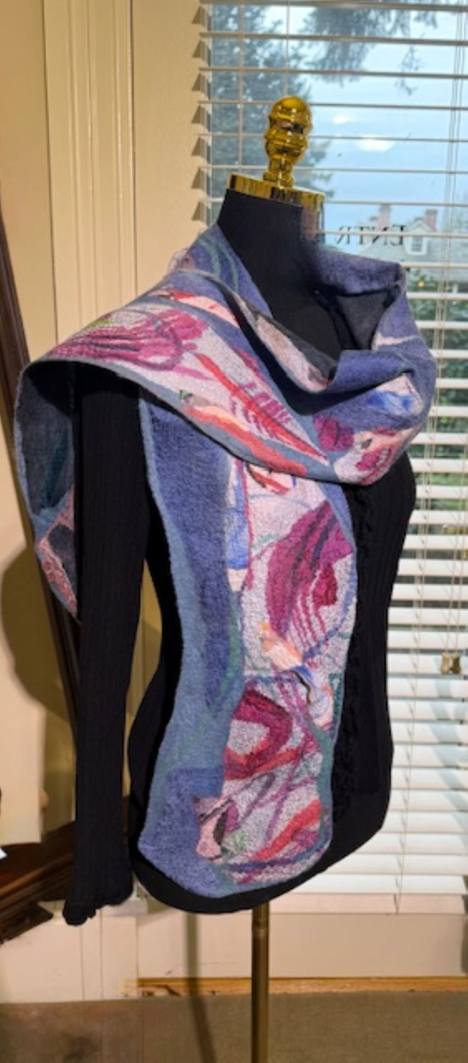 Medium: wet-felted merino wool silk fiers, cotton scrim