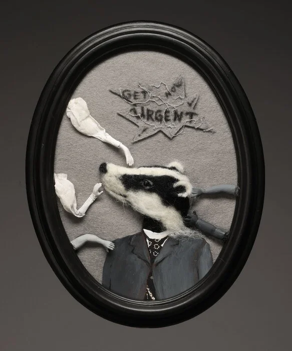 Medium: Needle felting, mixed media, vintage frame