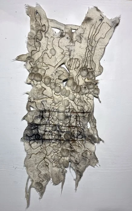 Medium: Wool, steel wool dray felting with rust dying, wet felt casting