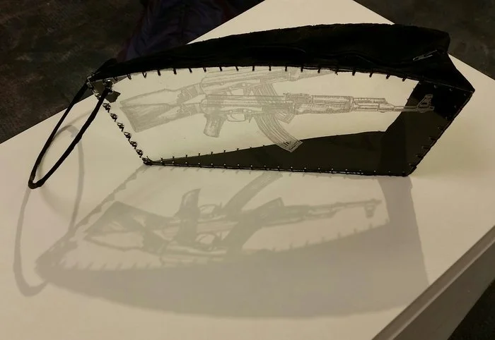 Medium: Acrylic , Leather and found objects